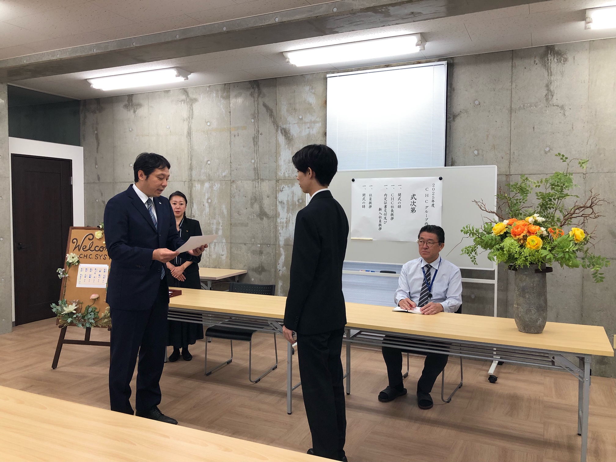 本日(10/1)10時より、2026年度入社予定の内定学生2名及び中途入社4名を迎え、町田本社にてCHCグループ内定式・中途入社式を執り行いました。